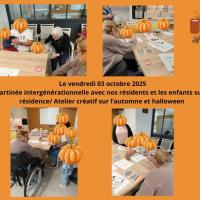 Publiée le 03/10/2025Ce matin nos résidents ont pu passer un moment privilégié avec les assistantes maternelles de la ville et les enfants. Ils ont réalisé des ateliers créatifs sur le thème de l'automne et Halloween. Un joli moment intergénérationnel ! L'atelier danse continue p [...] Lire la suite