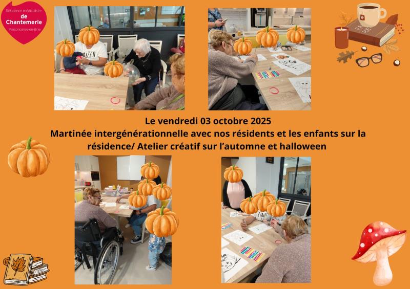 Ce matin nos résidents ont pu passer un moment privilégié avec les assistantes maternelles de la ville et les enfants. Ils ont réalisé des ateliers créatifs sur le thème de l'automne et Halloween. Un joli moment intergénérationnel !