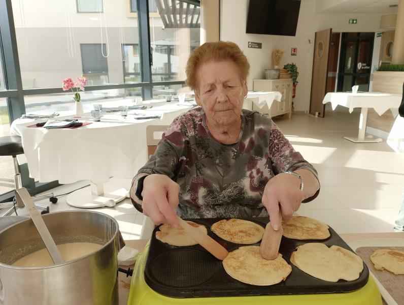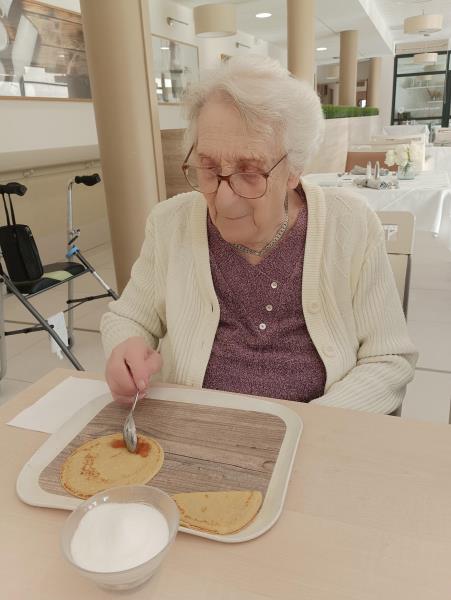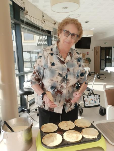 L'équipe de cuisine nous a préparé une bonne pâte à crêpes ce matin, ce qui à permis aux résidents de les cuire en animation cette après-midi bercés par de la musique des années 80.