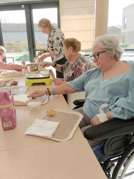 Deux de nos résidentes se sont installées derrière les crêpières, pendant qu'un autre petit groupe se chargeait de la garniture.