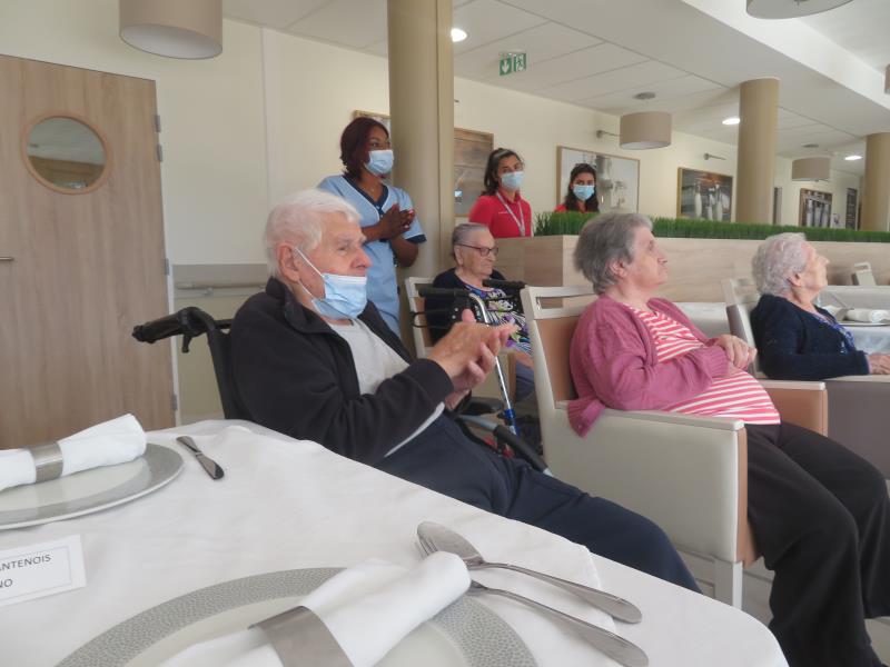 En ce jeudi 30 septembre à la résidence de Chantemerle située à proximité de COULOMMIERS, nous avons eu le plaisir d'accueillir Céline ARNAUD, notre chanteuse professionnelle qui vient tous les mois célébrer les anniversaires des résident(e)s. En cette journée, elle a pu chanter en l'honneur de Mesdames DOLIDIER, MOINET, PICARD et JUMEAUX ; lesquelles ont fêté leur anniversaire au cours du mois de septembre. C'est dans une ambiance très festive que nos résident(e)s ont pu chanter, danser, fredonner et taper dans les mains. Ils sont toujours ravis de ces après midi de fête. Ils ont pu faire une pause gourmande afin de reprendre des forces en dégustant un magnifique gâteau préparé par notre équipe en cuisine.