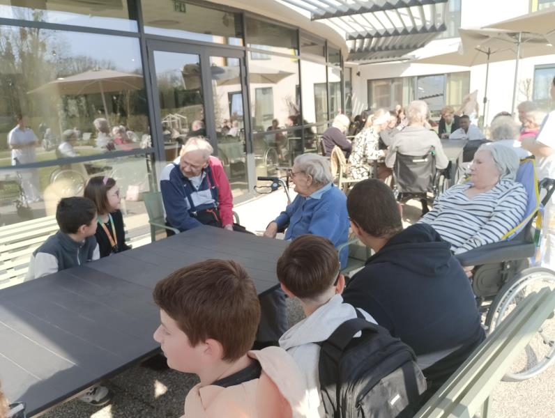 Et bien aujourd'hui à la résidence de Chantemerle, nous n'avons pas seulement fêté le printemps, mais nous avons également accueilli 30 grands enfants du collège de Mouroux afin de mettre des visages sur des noms et pour pouvoir faire connaissance.